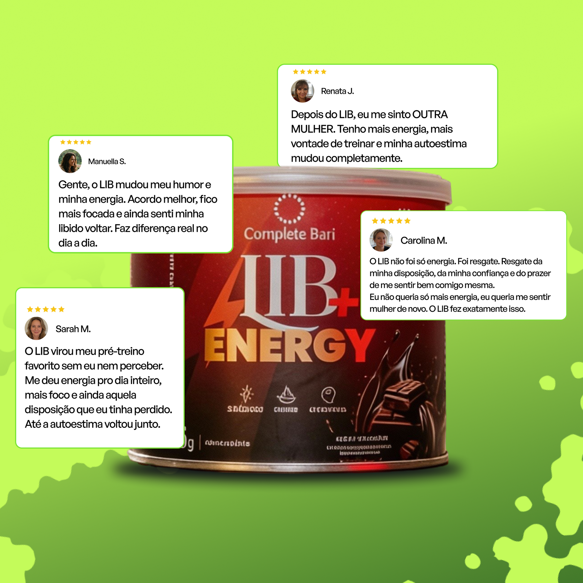 Lib + Energy Sabor Chocolate 180g Complete Bari - Tirosina Arginina CQ10.